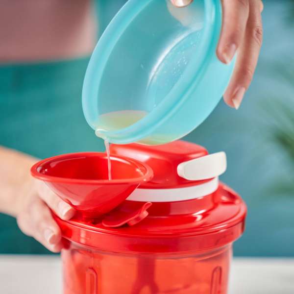 SuperSonic Chopper Extras miljøvenlige manuelle omrøringsmekanisme gør, at du kan tage den med overalt uden brug af elektricitet, samtidig med at du reducerer mængden af beskidt opvask og holder bordpladerne rene. Der er ikke noget som denne manuelle foodprocessor, du nogensinde har set. Du kan lave et uendeligt antal lækre måltider med dens tilpasningsdygtige tilbehør, som omfatter kniv, piskeris og tragt! De ideelle anvendelser for SuperSonic Chopper Extra er:
